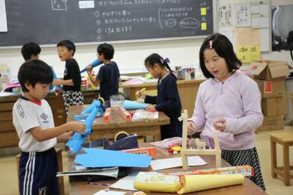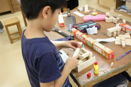 今まで頑張って切ってきた木片を組み合わせ、素敵な作品ができあがりました!