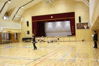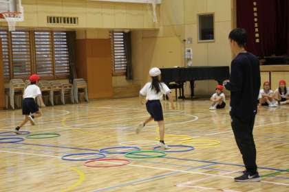 体育館でリズム感を大事にしながら走る活動に取り組みます。