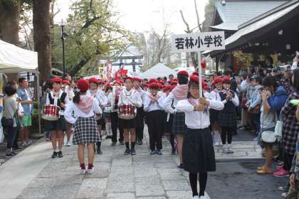 若小5、6年生による鼓笛隊は、13時に区役所前に出発します。
