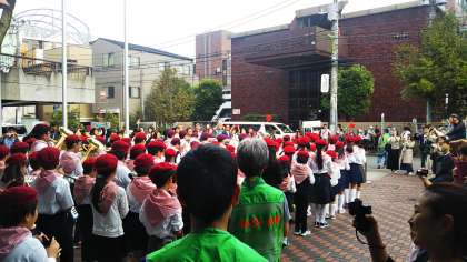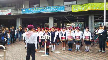 秋恒例の幕末維新祭りで、若小の5、6年生による鼓笛隊が演奏を披露しました。