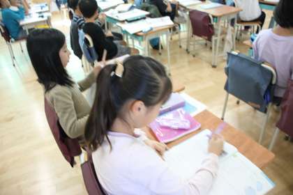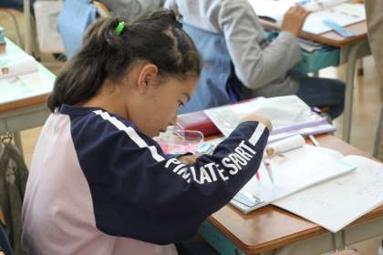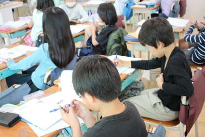 3年生は算数の時間に、コンパスを使った学習をしています。