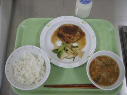ごはん 豆腐入りハンバーグ かぶのレモン醤油かけ きゃべつのみそ汁 牛乳