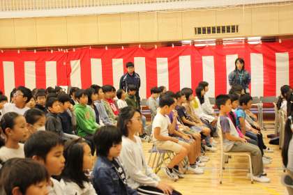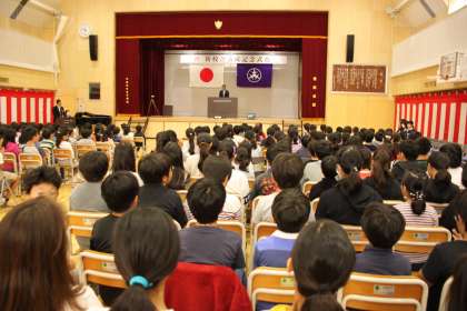 今日の2時間目に、落成式に向けた全校練習がありました。