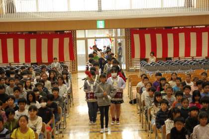 元気な呼びかけの声、鼓笛隊サウンドがいっぱいの落成式になりそうです。
