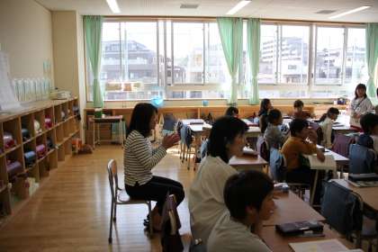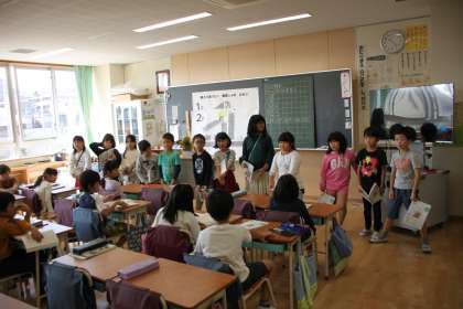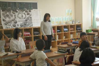 教科書に載っている「きつねのおきゃくさま」の物語をじっくり読み込み、