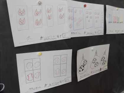 算数では「かけ算」に入りました。かけ算の規則性を簡単に学びました。絵に描いて表すことで、「かけ算ってこういう時に使うんだ。」と目でも理解することができました。