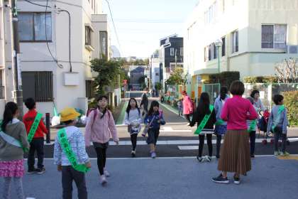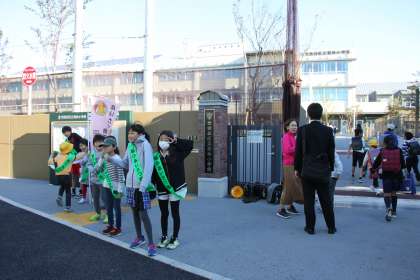 毎朝、正門前でさわやかに元気を振りまく1班の子達。