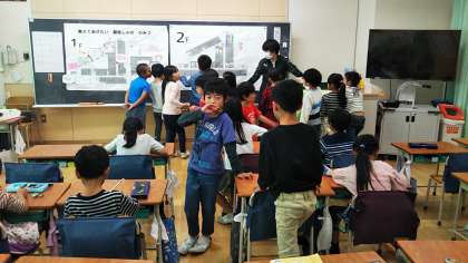 2年生は1年生に、新校舎のよい所や秘密をたくさん教えてくれました。