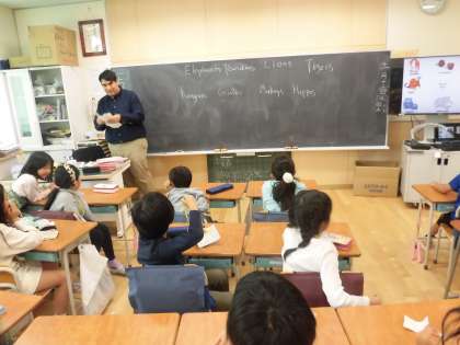 今日は、子どもたちも大好きな動物が出てくる授業でした。動物の名前は、知っているけど、英語になると「こんな読み方をするんだ!」と興味が高まりました。習った英語で、友達に尋ねてみたり、答えたりと楽しい時間を過ごしています。