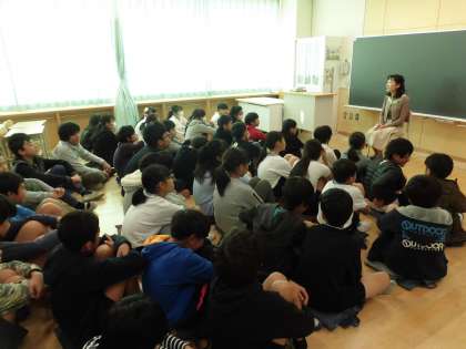 4時間目に、大林先生をお迎えして、お話し会をしていただきました。「素話(すばなし)」と言って、本を持たずに物語を語る手法でのお話し会で、子供たちは先生と目を合わせながらお話を聞くことができます。どんどん物語に引き込まれていった子供たちは、「何も持たずにお話ができてすごい」と感動していました。大林先生、ありがとうございました!