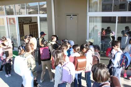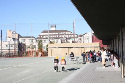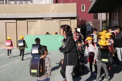 若小では毎朝、養護教諭が子どもたちを玄関で出迎えています。