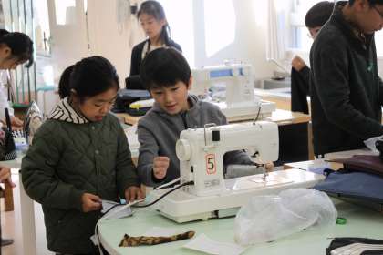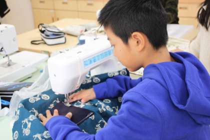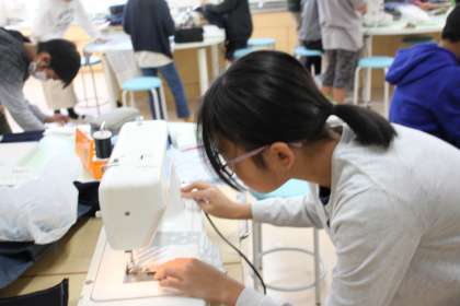 今日は制作しているカフェエプロンにポケットをつける活動です。