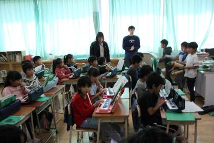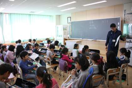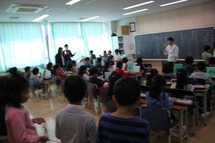 2年生が学年で、音楽会に向けた合奏練習をしています。