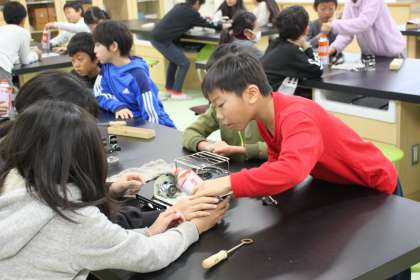 4年生が理科の時間に、金属を温める活動に取り組みました。
