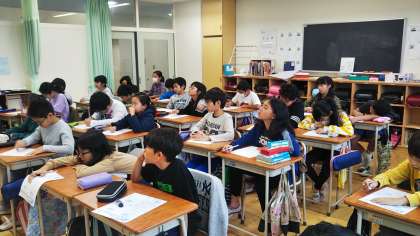 各教室でしっかりと校長先生のお話に耳を傾ける子どもたち。