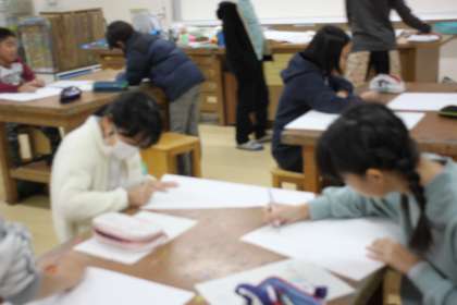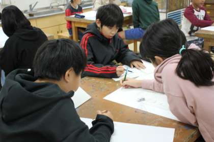 5年生は図工の時間に、環境ポスター作りに取り組んでいます。