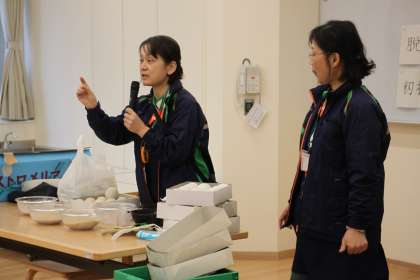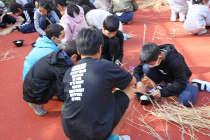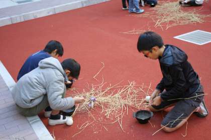 外部講師の方にお越しいただいて、脱穀ともみすりのやり方を教わります。