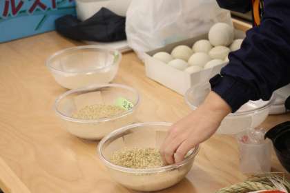 1時間頑張った結果、たくさんの玄米を収穫できました。