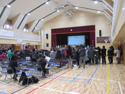 この日のためにわざわざご来校くださった保護者の皆様の人垣ができました!