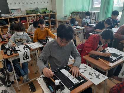 5年生が書き初めの練習をしました。