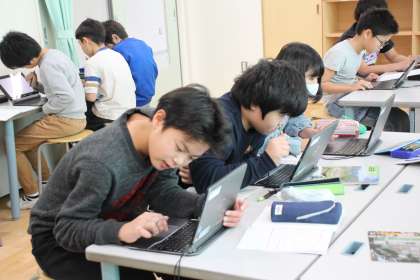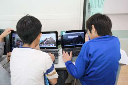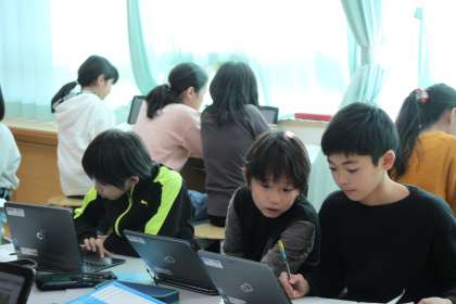 5年生が社会科の学習で、自動車運搬船について調べています。
