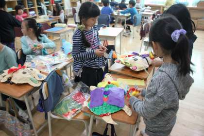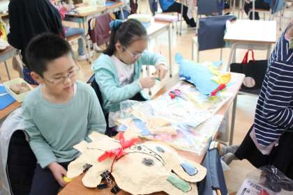 2年生は紙とシュレッダーダストで、素敵な立体作品を作っています。