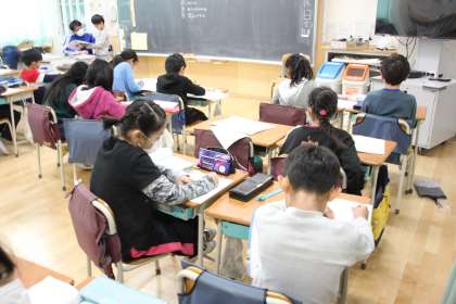3年生が算数の教科書に載っている問題に取り組んでいます。