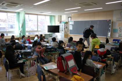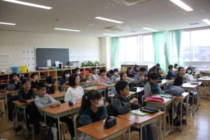 各クラスとも、教室で静かに校長先生のお話を聞いています。