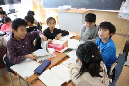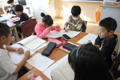 3年生が国語の学習の一環でグループ新聞をつくっています。