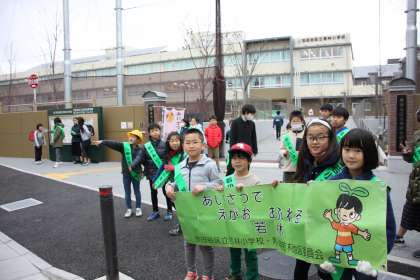 元気いっぱいのあいさつを振りまいてくれる7班の子たち。