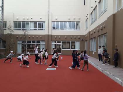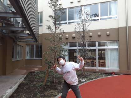 普段、学習や若小班活動で活用されている中庭が、校長先生のアイディアで新名所に進化!