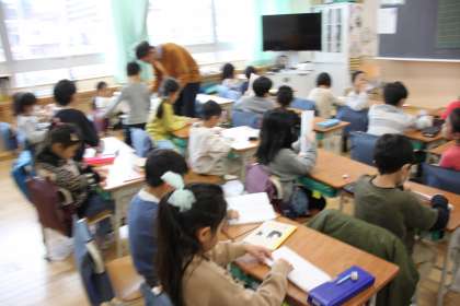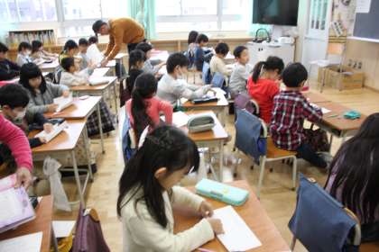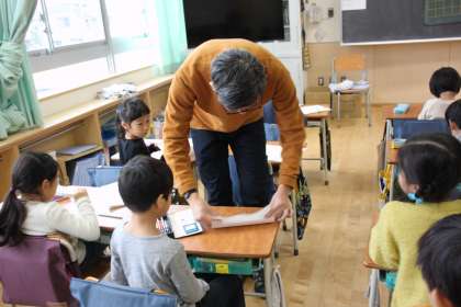 お手本を見やすくするために、先生の言うように折りたたみます。
