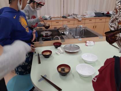 5年生が家庭科の時間に、おみそ汁を作りました。