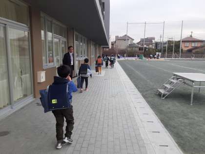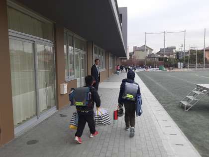 2学期の学習を終えた子どもたちが下校しようとしたとき、校長先生から「よいお年を」の声がかかります。