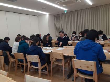 放課後の先生たちが集まって、さっそく研修会スタート!