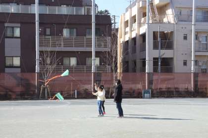冷たい北風が吹いているおかげで、いい感じにたこがあがりました!