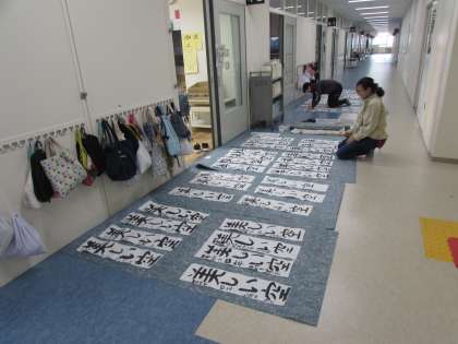 来週から始まる校内書き初め展に向けて、それぞれの学年が書写に取り組んでいます。これまでの学びを生かし、真剣に筆を走らせています。放課後、完成した作品を掲示するために、各担任が作業をしていました。ぜひ、ご来校いただき子どもたちの力作を見てあげてください。