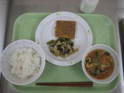 ごはん 松風焼き きのこ入り煮びたし 大根のみそ汁 牛乳