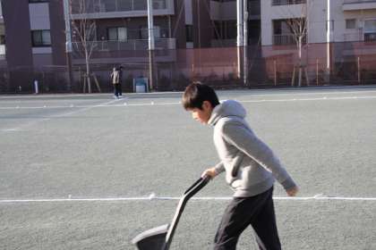 校庭では運動委員さんがペースランニング用の線を引いてくれていました。