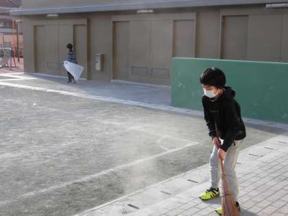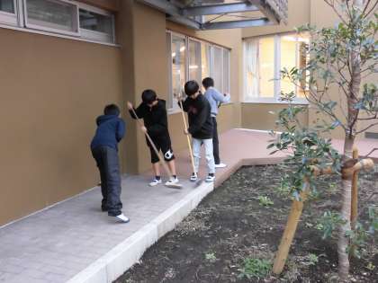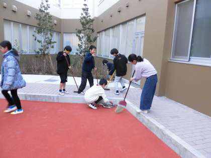 環境美化委員会の子どもたちが、委員会活動の時間に光の庭と校庭の犬走を掃除しました。通常清掃の分担場所ではないのですが、一生懸命に掃除し、学校の環境美化に貢献してくれました!