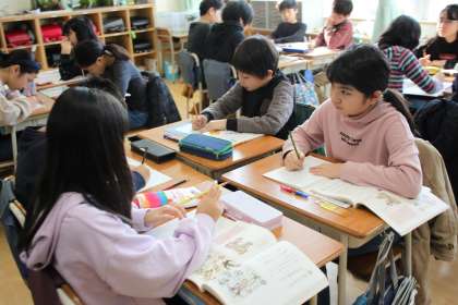 5年生は国語の学習の一環で句会を開いています。