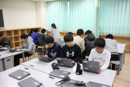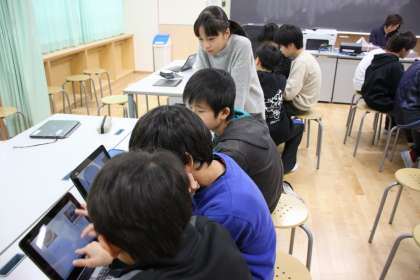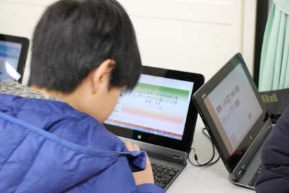 インターネットで調べたレシピを、手順通りにスライドにまとめる6年生。