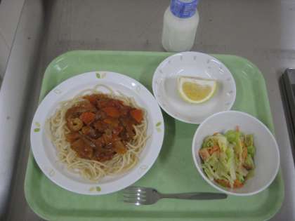 スパゲッティ地中海ソース シーザーサラダ はるか 牛乳