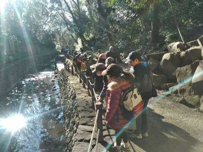 等々力渓谷に来ました。マイナスイオンを浴びながら、気持ちよく歩いています。何が発見できたかな?