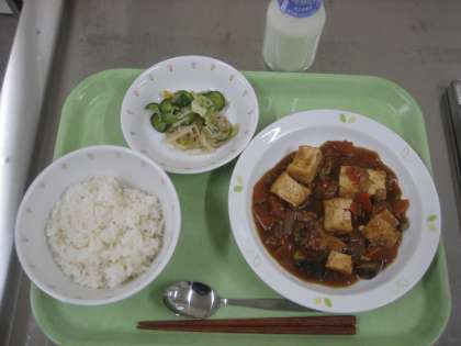 麦入りごはん 家常豆腐 白菜の中華サラダ 牛乳