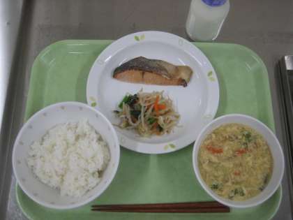 ごはん 鮭の塩焼き おひたし かき玉汁 牛乳