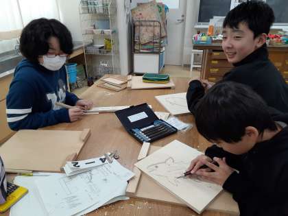 6年生が図工の時間に、卒業制作に取り組んでいます。