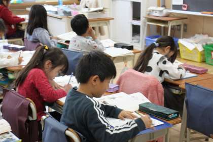 一文字ひと文字、とても丁寧に書くことができる1年生。