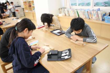 5年生はオリジナルデザインの木版画に挑戦中!