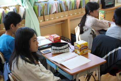4年生の教室には、おいしそうなお菓子の箱がいっぱい!